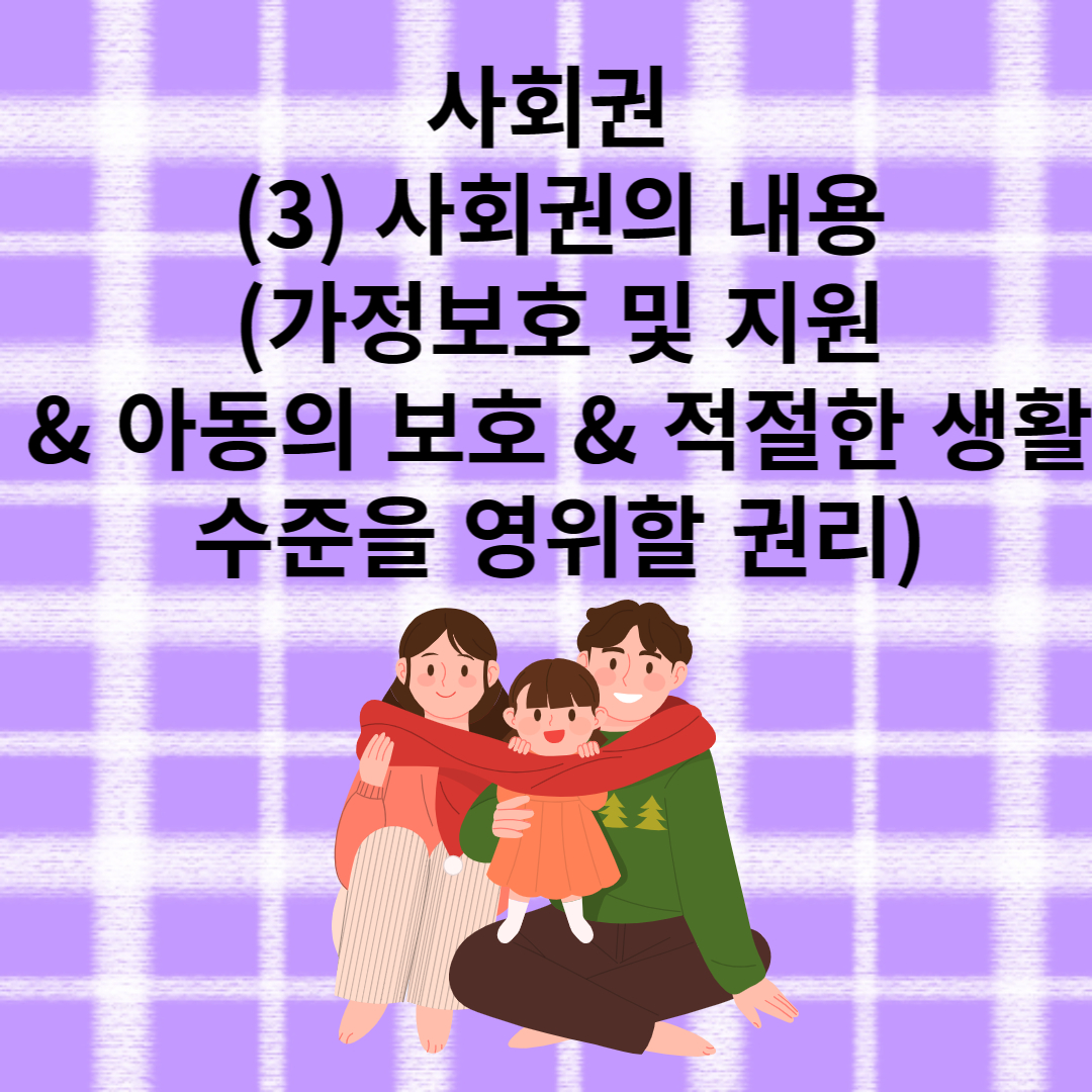 사회권 (3) 사회권의 내용 (가정보호 및 지원 & 아동의 보호 & 적절한 생활 수준을 영위할 권리)