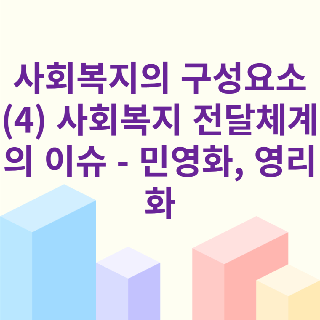 영하는 사회복지기관에 위탁됩니다. 현대사회에서 사회복지의 주체가 다양화되면서 사회복지 전달체계의 민영화 및 영리화의 문제가 큰 이슈로 대두되고 있습니다 (조흥식 외, 2008: 72-75). 이에 대해 구체적으로 살펴보면 다음과 같습니다.