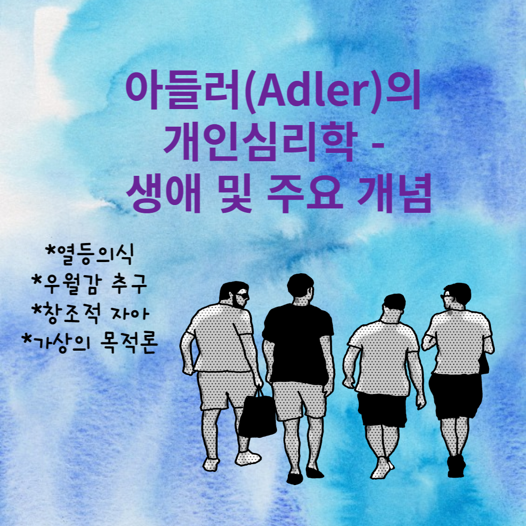 개인심리학의 주요 개념은 열등의식, 우월감 추구, 창조적 자아, 가상의 목적론이 대표로 거론됩니다.