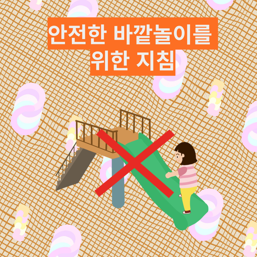 - 바깥놀이를 할 때는 교사가 영유아를 살펴보고 안전하게 놀이할 수 있게 지원한다.
