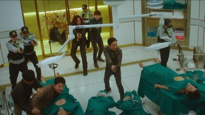자기 교통수단을 가진 건 태수와 여치(오토바이)밖에 없어서 태수와 여치&대만 팀으로 나눠서 조사합니다. 태수는 원장 쪽, 여치&대만 쪽은 공항. 하지만 태수는 원장을 막으려고 하지만 원장이 오히려 "어차피 쓰레기처럼 살다 갈 인생을 자신이 도움 되게 만든 것"이라는 뻔뻔한 말에 흥분해 원장을 차안에서 강제로 끌어내려다가 원장이 숨기고 있던 전기 충격기에 당하고 여치&대만, 새가슴으로 이뤄진 이 둘은 윤사희가 장기 이식을 받을 손님을 맞이하는 장면을 보고도 우물쭈물 거리다가 놓칩니다. 설상가상 태수와도 왜인지 연락이 되지 않았죠. 이 때, 대만은 원장이 의뢰인의 남편 사고를 보러 갈 때 수련회장에서 회의 중이었다는 말을 떠올리고 그곳이 수술실임을 추리해냅니다.이 사실을 대만이 권 팀장에게 알리지만 서장은 네가 책임질 거 아니면 허가해줄 수 없다고 으름장을 놓습니다. 하지만 권 팀장은 망설임 없이 부하들에게 서장님이 고맙게도 허가를 내려주셨다며, 자신이 모두 책임질 테니 빨리 나가라고 지시합니다.