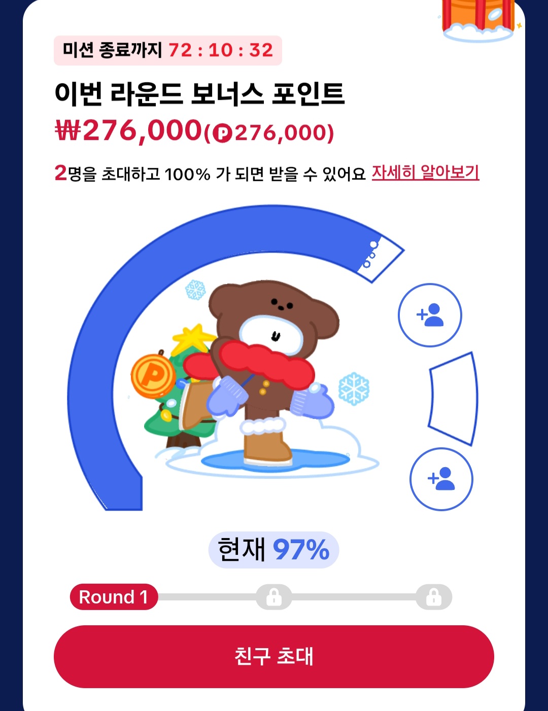 ② 출석 체크 미션 : 초대 받은 사람이 미션을 완료하면 초대한 사람은 초대 보상을, 초대 받은 사람은 미션 클리어 포인트를 받게 됩니다. (이 포인트의 액수는 아직 모르겠습니다.)
