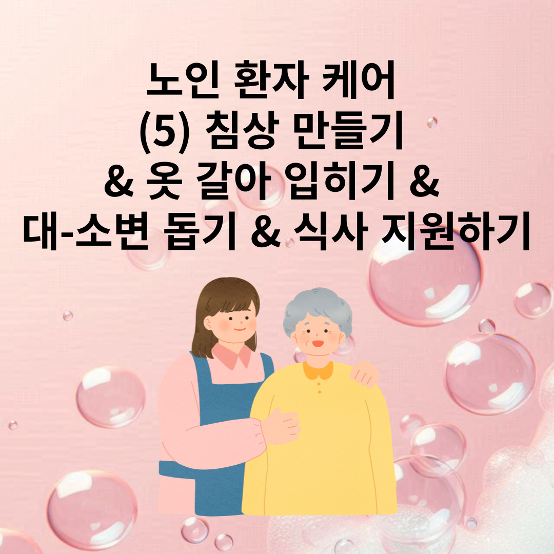 노인 환자 케어 (5) 침상 만들기 & 옷 갈아 입히기 & 대-소변 돕기 & 식사 지원하기