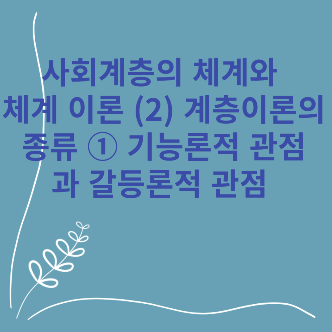 사회계층의 체계와 체계 이론 (2) 계층이론의 종류 ① 기능론적 관점과 갈등론적 관점