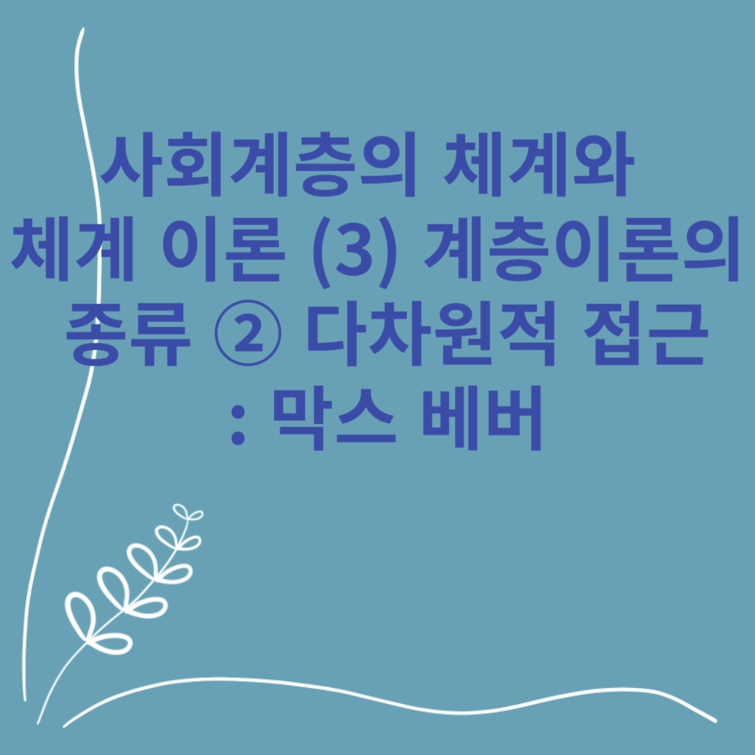 사회계층의 체계와 체계 이론 (3) 계층이론의 종류 ② 다차원적 접근 : 막스 베버