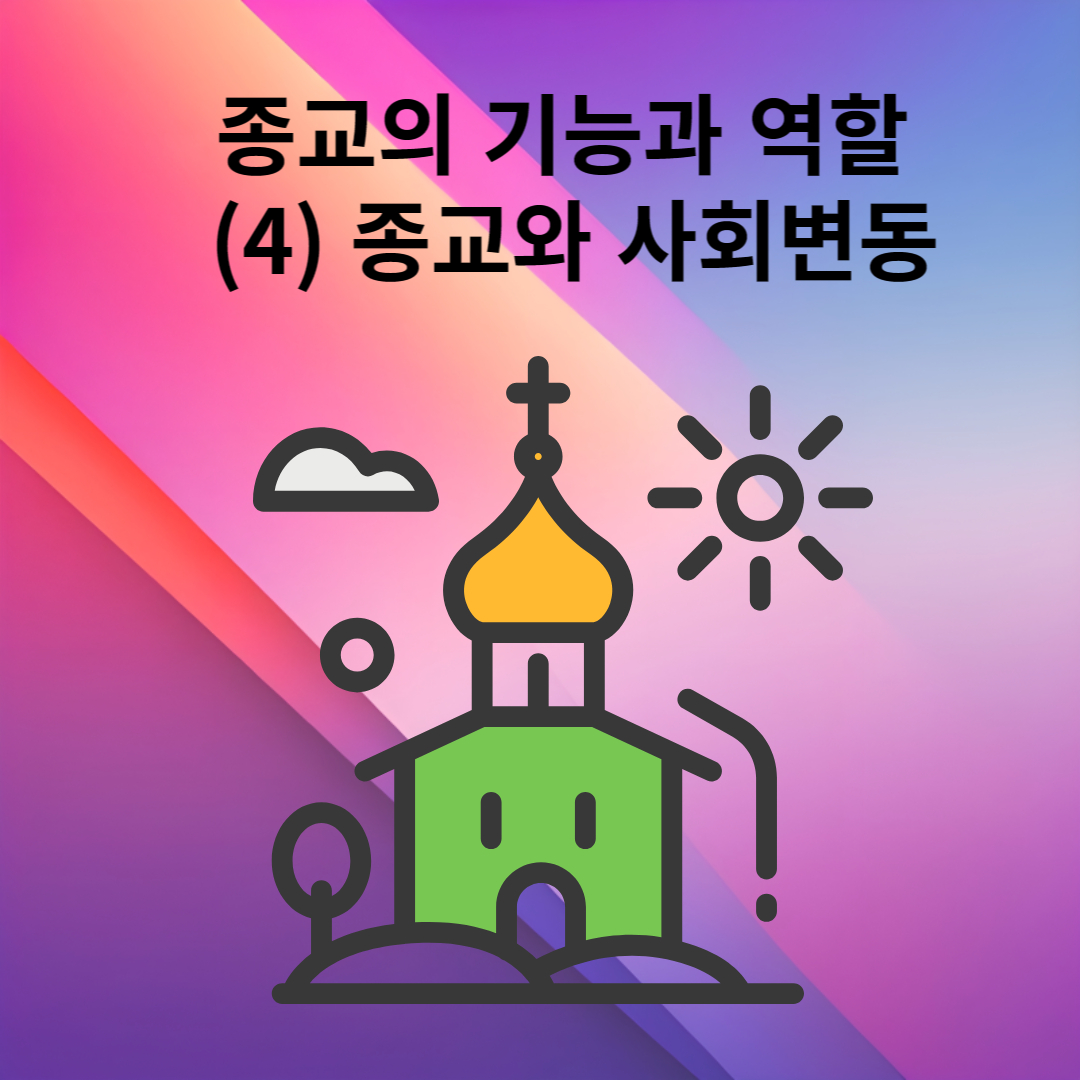 종교는 사회변동과 매우 밀접한 관련을 지님. 이는 오래 전 고전사회학자들에 의하여 문제가 제기된 이래 아직까지도 논의가 활발히 진행 중인 사회학적 핵심적 연구주제 가운데 하나입니다. 논의의 시발은 베버(M. Weber)의 고전적 저술인 ‘개신교의 윤리와 자본주의 정신’(The Protestant Ethics and the Spirit of Capitalism)에서 비롯됩니다. 흔히들 베버의 전 생애에 걸친 방대한 연구업적은 맑스(K.Marx) 의 극복이고 비판이라고 말했습니다. 이 점은 종교와 관련해서도 예외가 아닌데, 종교가 사회변동을 지체시킨다고 주장한 막스와 달리, 베버는 오히려 종교가 사회변동의 촉매제가 되었다고 주장하였습니다. 그는 오랜 세월에 걸쳐 서구사회의 지배적 종교로 자리잡은 개신교에 관심을 가졌으며, 개신교의 여러 종파들 가운데에서도 특히 청교도에 주목하였습니다. 청교도들이 믿는 운명예정설은 그들로 하여금 근면과 검소, 절제, 금욕 등 현대사회에서 중요시되는 일의 덕목(work ethics)을 몸소 실천하게 함으로써, 개인뿐만 아니라 집단의 차원에서도 합리적 규율에 의거한 경제적 부의 축적을 독려하였습니다. 이것이 궁극적으로 자본주의라는 인류역사상 초유의 강력한 사회제도가 출현한 계기를 마련하였습니다.