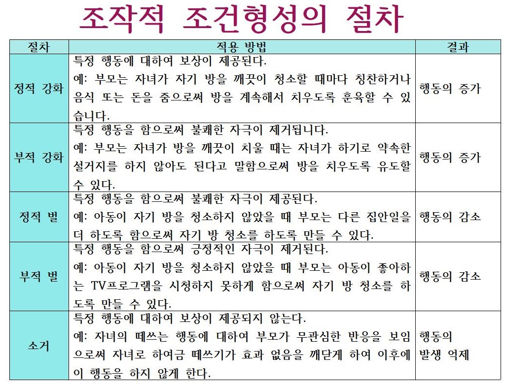 록 할 수 있습니다. 그러나 이때 고전적 조건형성이 이루어져 아동이 벌을 통해 경험하는 공포나 불안과 같은 부정적인 감정을 벌을 주는 사람과 연합시킬 수 있습니다.
