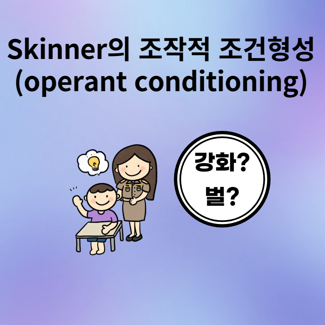 Burhus F. Skinner(1904-1990)는 Watson의 고전적 조건형성 이론을 확장시켜 어떤 행동을 한 후 뒤따르는 결과에 따라서 이후에 그 행동을 되풀이할지 여부가 결정된다는 조작적 조건형성을 주장하였습니다. 이때 조작이란 유기체가 스스로 시작하는 행동을 의미합니다.